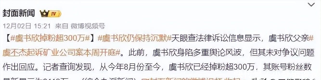 随着虞书欣身上的负面舆论持续发酵,包括自然堂等多个品牌都宣布与她终止合作,甚至《云初令》都被要求换角,可以说她在娱乐圈上的道路遭受了十分沉重的打击。短短四个月时间,虞书欣全平台粉丝就掉了300万,更创下了单日掉粉超10万的记录,尽管依然有一些粉丝选择跟随和支持,但虞书欣的名气早就大不如前。